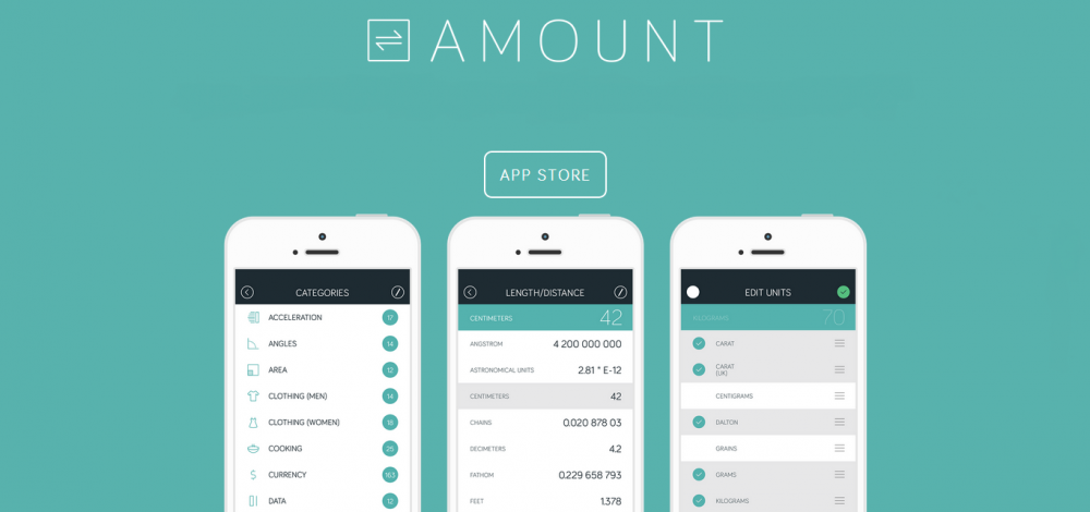 Несмотря на свою простоту, в Amount скрыто много мелких и полезных особенностей. К примеру, если вы потрясете iPhone, Amount предложит поменять сортировку единиц измерения. А различные свайпы упрощают процесс использования приложения.