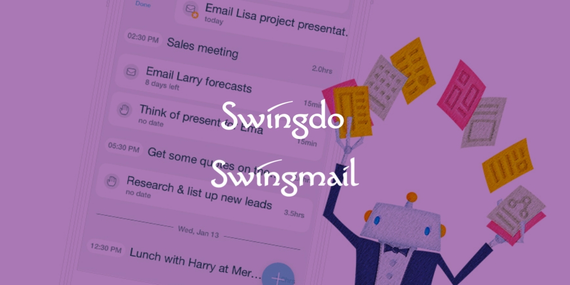 Вместе приложения образуют экосистему для удобного управления вашими делами и связи с контактами, которая позволяет быстрее реагировать и экономить время. Swingdo подключается к вашим календарям, синхронизируя события оттуда и выуживая их из контекста входящих писем Swingmail.