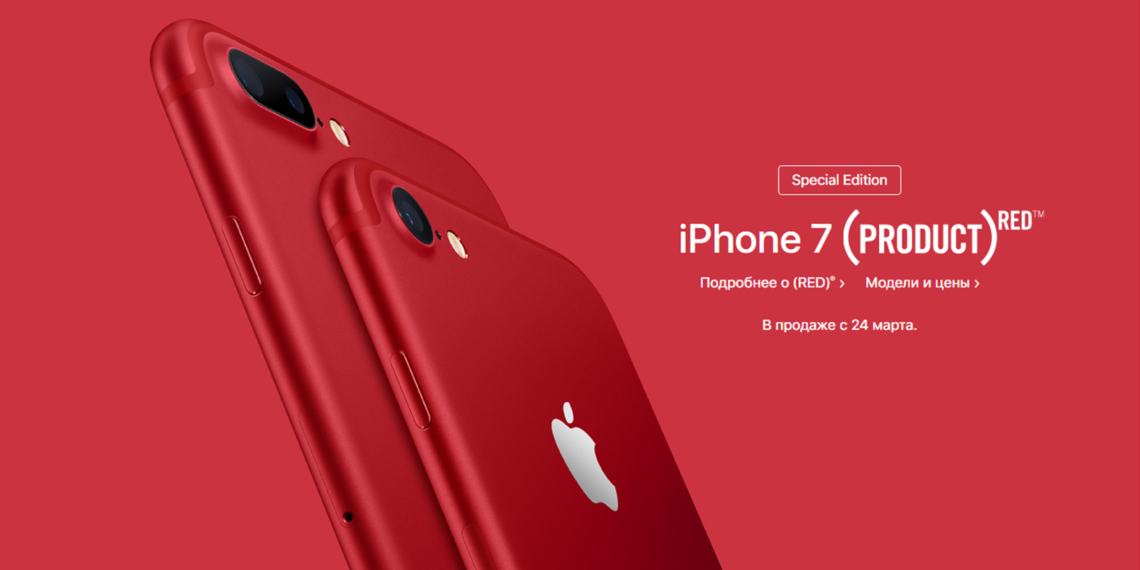 Помимо цвета, в iPhone 7 ничего не изменилось. Смартфоны можно будет купить уже в пятницу, 24 марта, у авторизованных реселлеров Apple. Официальная цена iPhone 7 и iPhone 7 Plus (PRODUCT)RED Special Edition — от 60 990 и 70 990 рублей соответственно за модель с 128 ГБ памяти. Также в продажу поступит версия на 256 ГБ.