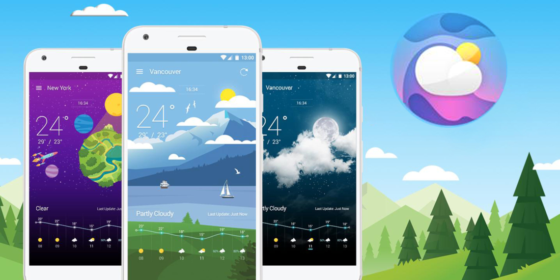 Кроме того, внутри программы есть магазин, где можно бесплатно скачать или купить анимированные темы для основного экрана Weather Wiz. Изображённые на них погодные эффекты меняются вместе с ситуацией за окном. Например, если на улице пасмурно, по экрану плывут тучи. А в ясные дни солнце светит не только на небе, но и в приложении. Это же касается и времени суток.