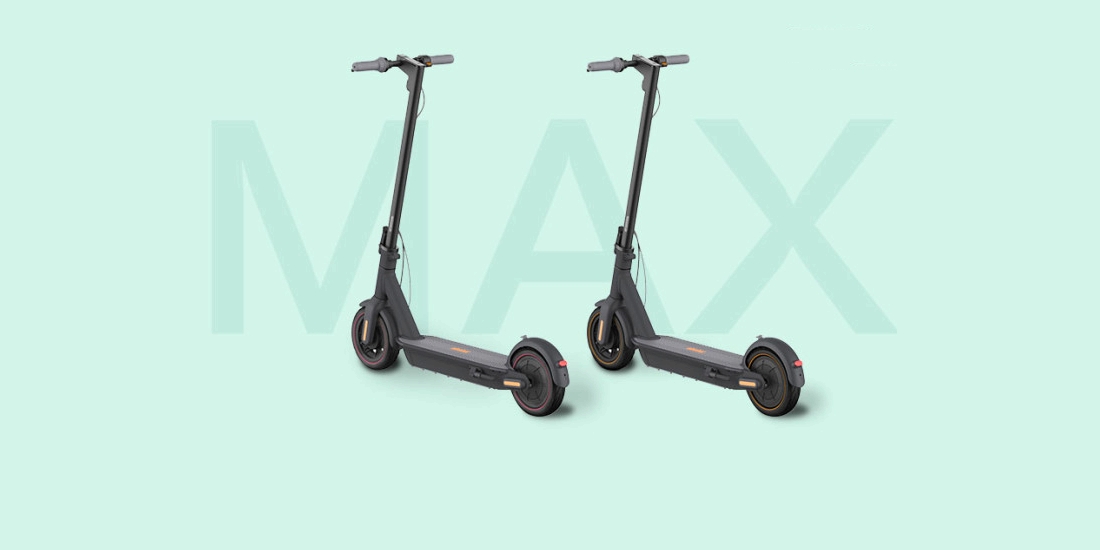 Ninebot MAX. Он имеет складную раму из авиационного алюминия и 10-дюймовые пневматические шины, обеспечивающие плавное перемещение даже по неровным участкам дороги.